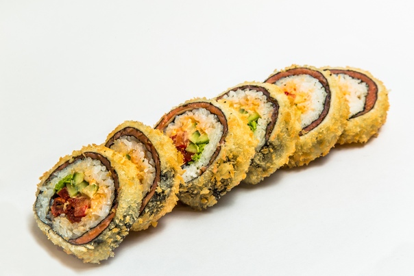 Яки сяке маки Вес: 6 шт Цена: 890 Краткое описание: Лосось, вяленый томат темпура, сухари Панко и соус Унаги